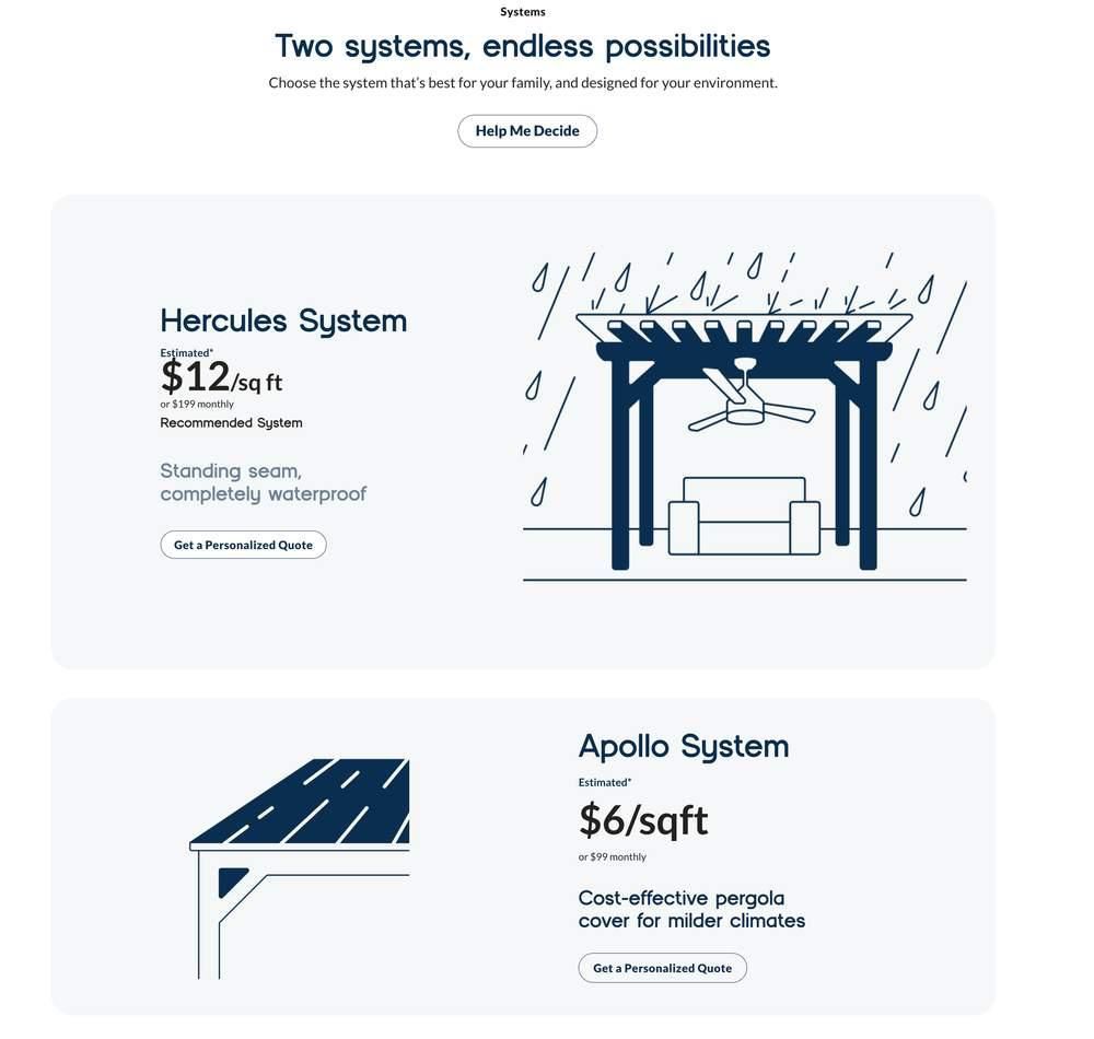 Sola Outdoor Aluminum (Custom Solar-Powered Kit) vs. Custom Cedar Wood Pergola Sola Outdoor Aluminum Pergola