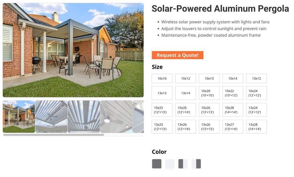 - Choose Sola Outdoor Aluminum for a modern, low-maintenance, high-tech pergola that elevates usability and aesthetics with its features.