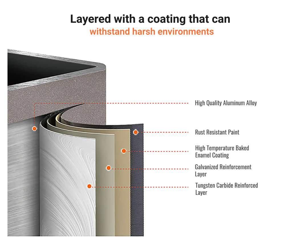 - Durable, low-maintenance construction – powder-coated aluminum resists rust, rot, fading, and requires minimal upkeep